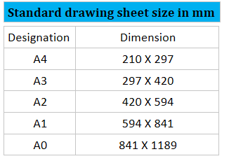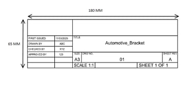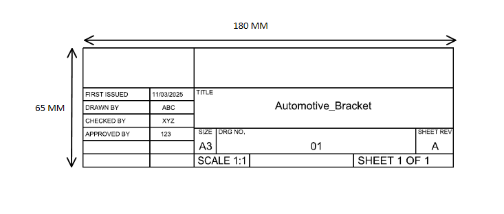 Typical title block size varies from 170-180 mm X 65 mm.