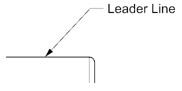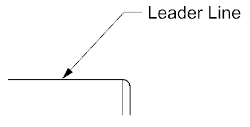 A thin inclined line with an arrowhead or dot to use to connect notes, symbols, dimensions to a specific feature.