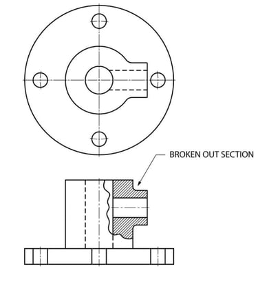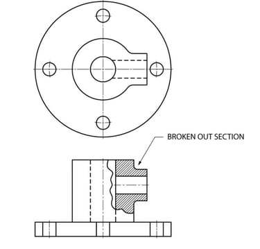 Breakout section: A small portion of object is cut to revel the internal feature of a part.