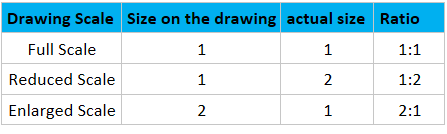 It is the ratio between the size of a part in drawing to its actual size.