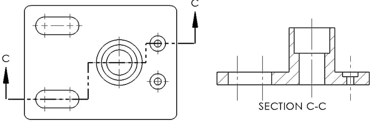 Offset Section: In offset section view the cutting plane is offset to pass through the important features that are not in straight line.
